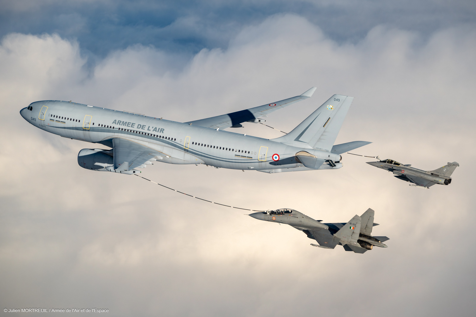 Cette édition de Garuda s’est articulée en deux phases distinctes. La première semaine fut axée sur le dogfight au-dessus des zones d’entraînement habituelles. Ces combats rapprochés se déroulaient selon des formats classiques : 1 contre 1 ou 2 contre 1. Pour les participants, la mission du matin comportait aussi systématiquement un volet ravitaillement en vol auprès des A330 MRTT de l’Armée de l’Air et de l’Espace. Les chasseurs français, quant à eux, ravitaillaient également sur des A400M Atlas. Les Sukhoï n’étaient pas aptes à le faire sur le gros quadrimoteur de transport. Il se dit que, peut-être, dans le futur, les Su-30 pourraient ouvrir ce domaine en collaboration avec la DGA Essais en vol…